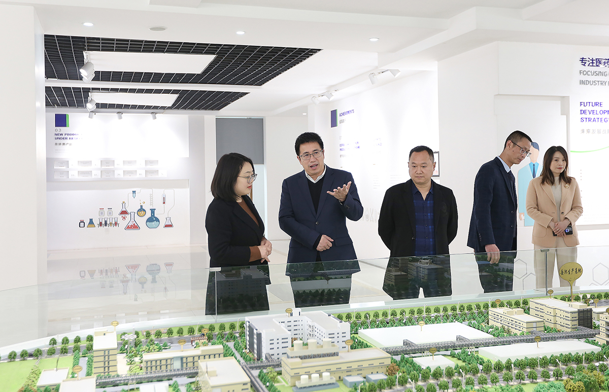 在调研现场,王义全一行深入企业,实地察看了岳池县川渝合作生物医药城规划馆、岳池县创新药物孵化中心、仁安药业、爱斯特药业、科伦药业,全面了解岳池医药健康产业发展、医药企业建设、人才需求等情况。