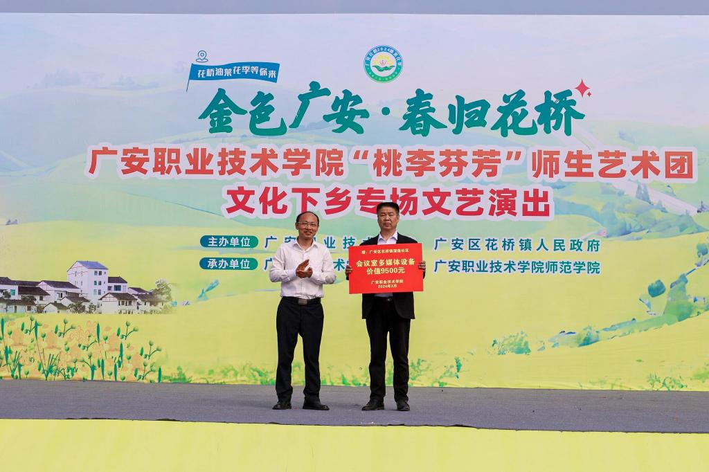 3月24日,正值花桥镇油菜花节举办之际,ac米兰官网中文网站和花桥镇人民政府策划的“桃李芬芳”师生艺术团文化下乡志愿服务活动在花桥镇丰收广场举行。