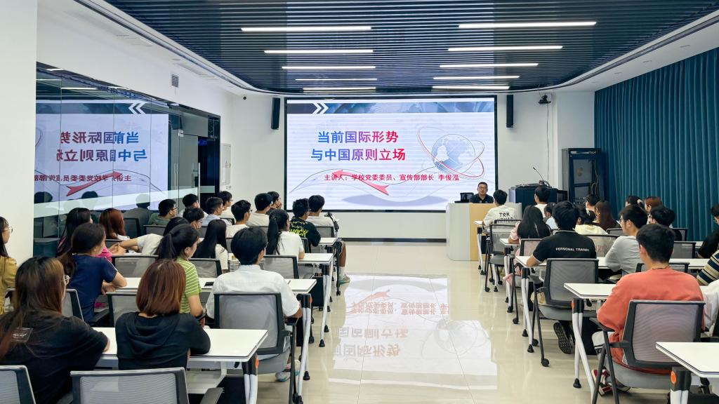 思想政治课上,李俊泓还系统总结了当前世界地缘安全复杂现状、多极秩序分化整合、全球经济艰难复苏与极端天气加剧全球安全风险的世界形势。在对国际宏观形势进行分析的基础上,他聚焦俄乌关系、巴以冲突和非洲国际形势三个焦点问题,进行了深入系统分析和阐释。随后,他以中国外交政策为立足点,详细解析了中国政府所采取的外交政策及深层次原因。他勉励同学们要开阔视野,关心国际国内形势,正确理解党和政府制定的方针政策,刻苦学习,增长本领,不负韶华,将自己的青春和奋斗融入中华民族伟大复兴的伟业之中。