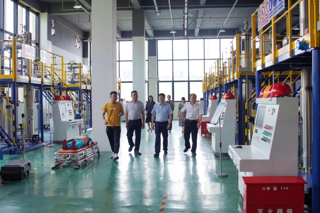 李松林一行人还参观了学校李俊泓省级技能人才工作室、化工安全技能实训基地和工业机器人实训中心,并针对打造十佳省级技能人才工作室提出了宝贵的意见和建议。