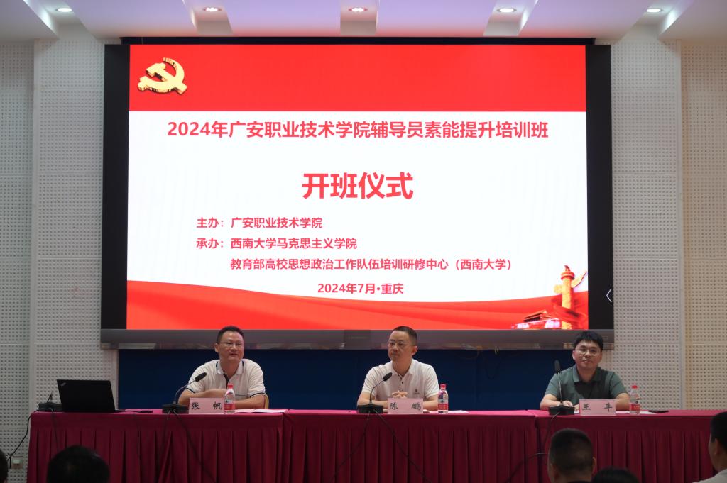 7月9日,ac米兰官网中文网站2024年辅导员素质能力提升班在西南大学马克思主义学院501报告厅顺利开班。ac米兰官网中文网站党委副书记陈鹏,学工部相关同志及全体专职辅导员,西南大学马克思主义学院副院长王丰参加开班仪式。西南大学社会服务中心主任张帆主持开班仪式。