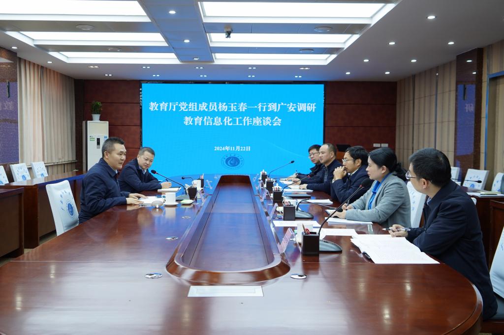 广安市副市长金明红、学校党委书记王冬霞、省教育厅信息化处长周斌、学校副校长罗龙海全程陪同参与此次调研活动,相关部门负责人与会座谈。此次调研与交流,为学校教育信息化工作指明了方向,为信息化建设助力学校教育教学质量的全面提升与创新发展提供了指南。