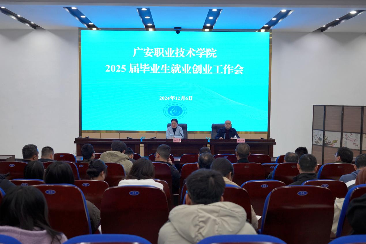 12月6日,四川省教育厅组织召开2025届全省普通高校毕业生就业创业工作视频会议。学校在希贤厅设立分会场,党委书记王冬霞,党委委员、副校长冉嘉洛,学生工作部、团委、武装部(保卫处)、教务处、对外交流与合作处、招生就业处等部门负责人,各二级学院党总支书记、就业创业工作人员、2025届毕业班班导师共计60余人参加会议。