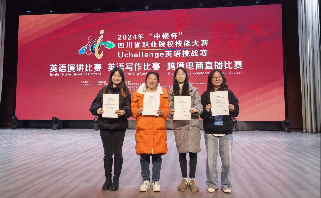 Uchallenge英语挑战赛赛项设置英语演讲比赛,英语写作比赛,跨境电商直播比赛。写作大赛旨在考查学生的英文书面沟通、跨文化交际、逻辑分析、人文思辨等综合能力及相关素养,促进学生英语写作能力和英语应用能力的全面提升。经过激烈角逐,由母滨彬、邓建兰老师指导的小学英语教育专业蒋美琪、临床专业李越分别荣获一等奖。