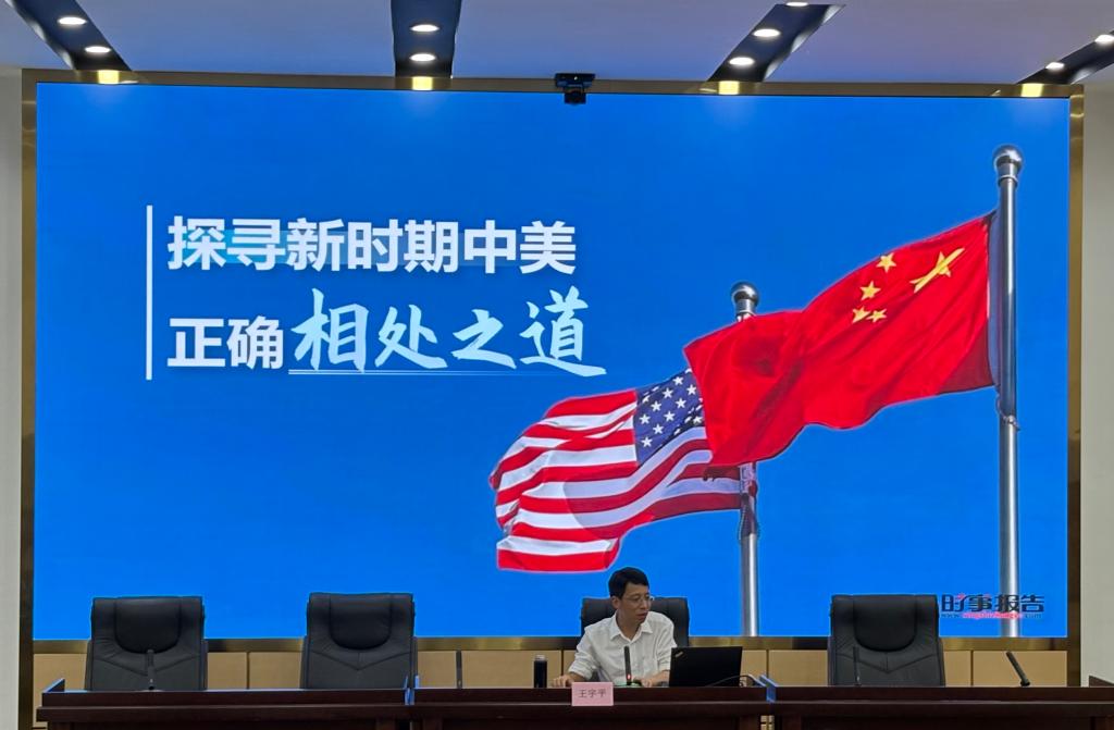 为拓宽师生国际视野,提升他们对国际关系的理解,5月7日下午,学校党委委员、纪委书记王宇平以《探寻新时期中美正确相处之道》为主题,在先圣厅为经济与旅游管理学院师生讲授了一堂生动精彩的形势与政策课。