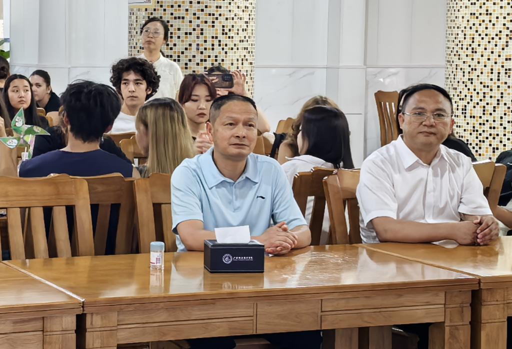溯千年源流,悟奋进精神。活动伊始,袁驰以温润话语,为留学生们徐徐铺开端午节的千年历史画卷。他生动讲述屈原的爱国情怀与节日源起,详解赛龙舟、吃粽子等传统习俗。在趣味问答环节,同学们争相竞答,现场气氛活跃热烈,互动频繁。当大屏幕展现龙舟击水、百舸争流的磅礴画面时,他以“逆流行舟,不进则退”深情勉励学子们:“求学之路亦如逆水行舟,唯有奋发向上,勇毅前行,方能抵达理想彼岸。”这番铿锵寄语,将传统文化精髓升华为跨越国界的进取力量,在留学生心中激起强烈共鸣。