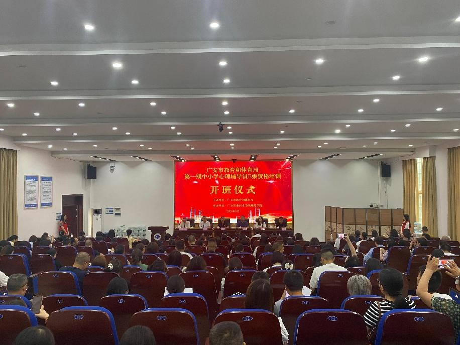 6月22日上午,广安市第一期中小学心理辅导员B级资格培训在ac米兰明德楼先圣厅开班,全市各区县中小学心理辅导员共254人参加了此次培训。广安市教育和体育局党组成员、副局长屈昌明,徳艺卫科科长张春华,ac米兰官网中文网站党委委员、副校长袁驰、继续教育学院和师范学院相关负责人出席了开班仪式。