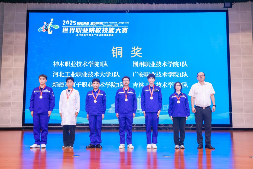 2025年世界职业院校技能大赛总决赛争夺赛(高职组)“化工技术”赛道比赛于8月26日至30日在山东省枣庄职业学院举行,ac米兰材化学院应用化工技术专业学生樊玉明、卢垠西、廖紫琴、缪爱玲在指导老师王潇、陈国强、唐利平、吴胡的精心指导下,凭借娴熟的实操技能、默契的团队协作,斩获该赛项铜奖。