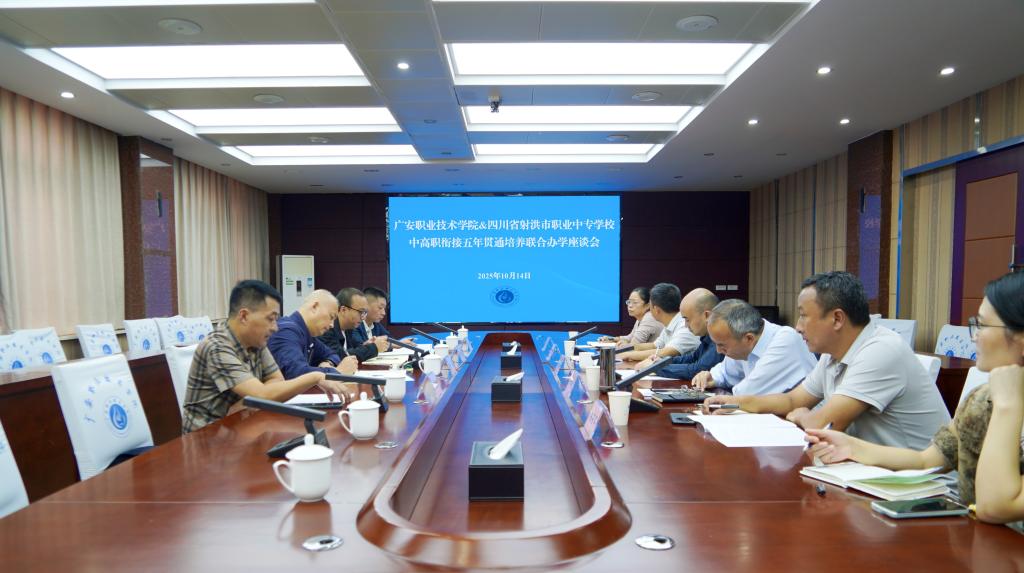 为深化中高职衔接五年贯通培养工作,积极推进现代职业教育体系建设,实现资源共享、优势互补,10月14日,四川省射洪市职业中专学校党委书记李勇一行四人到ac米兰考察交流。学校党委委员、副校长冉嘉洛出席座谈会,招生就业处处长杨小锋、教务处处长甘华银、对外交流与合作处处长杨奇峰、新材料与化学工程学院院长唐利平参加座谈会。