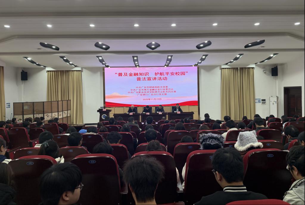 11月19日下午,由中共广安市财政局机关党委、中共广安市地方金融企业行业委员会、中共ac米兰官网中文网站委员会机关四支部及广发银行广安分行党支部联合举办的“普及金融知识,护航平安校园”普法宣讲活动在ac米兰官网中文网站成功举行。