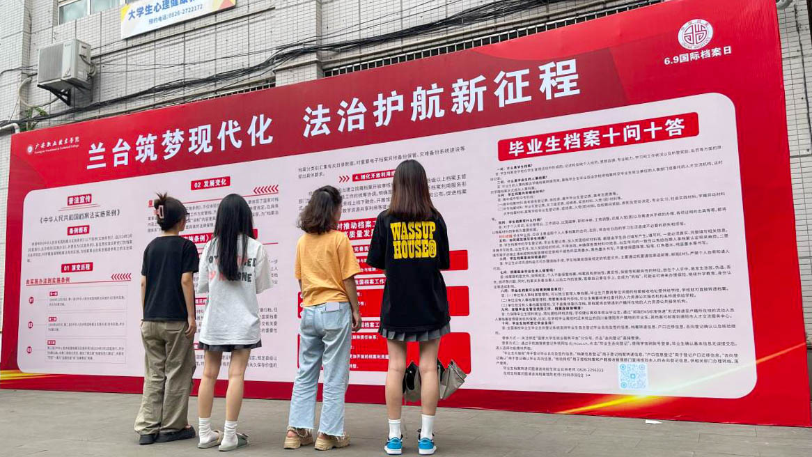 为进一步贯彻习近平总书记关于档案工作的重要指示批示精神,加强档案普法宣传,6月7日-6月16日,学校开展以“兰台筑梦现代化 法治护航新征程”为主题的档案普法和毕业生档案知识专题宣传活动,让师生们了解新颁布的《中华人民共和国档案法实施条例》,结合毕业季,发布《毕业生档案十问十答》,强化学生个人档案的重要性,帮助毕业生了解个人档案的转递提取方式等。