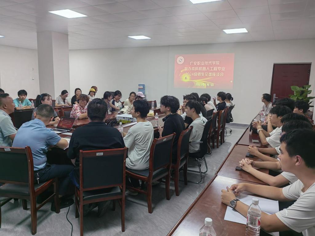 7月1日,在党的104岁生日这一特殊日子,智能学院召开2024级机器人工程专业联合培养本科班学生座谈会。学院党总支书记杨奇峰、执行院长王国明及教师代表与全体学生参加会议。
