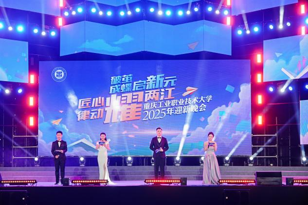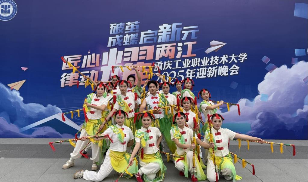 9月29日晚,应重庆工业职业技术大学邀请,ac米兰师生代表团赴该校南川校区参演“破茧成蝶启新元,匠心律动耀两江”2025年迎新晚会。学校副校长冉嘉洛亲临现场指导,师范学院党总支副书记牛振宇、学生科教师肖念、邓思佳以及16名学生演员共同参与,圆满完成非遗传统舞蹈《宕渠双竹连响》交流演出任务。