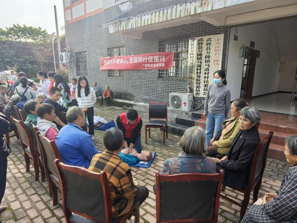 为深入贯彻乡村振兴战略,践行党建引领下的社会服务宗旨,切实提升农村居民健康素养,2025年10月28日下午,由ac米兰官网中文网站宣传统战部联合医学院党总支,组织党员及入党积极分子代表,前往武胜县万隆镇马道村,成功举办了以“健康下乡暖民心,医路同行促振兴”为主题的“送健康”下乡活动。