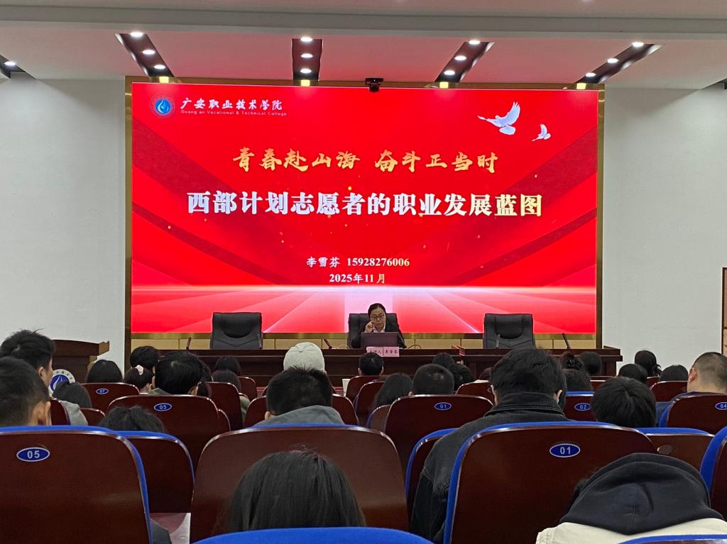 11月6日,广安市青年志愿者协会主办、学校继续教育学院承办的2025年第二期四川省大学生志愿服务西部计划志愿者培训班在ac米兰举行,学校“职引未来”辅导员工作室负责人、学生工作部副部长李雪芬受邀为志愿者讲授了《青春赴山海•奋斗正当时——西部计划志愿者的职业发展蓝图》专题讲座,从专业视角出发,围绕“思维跃迁”“能力盘点”“成长路径”和“实践举措”四大模块,构建了一套系统化的职业成长方法论,为新入职的志愿者们送上了一份宝贵的“职业导航图”。