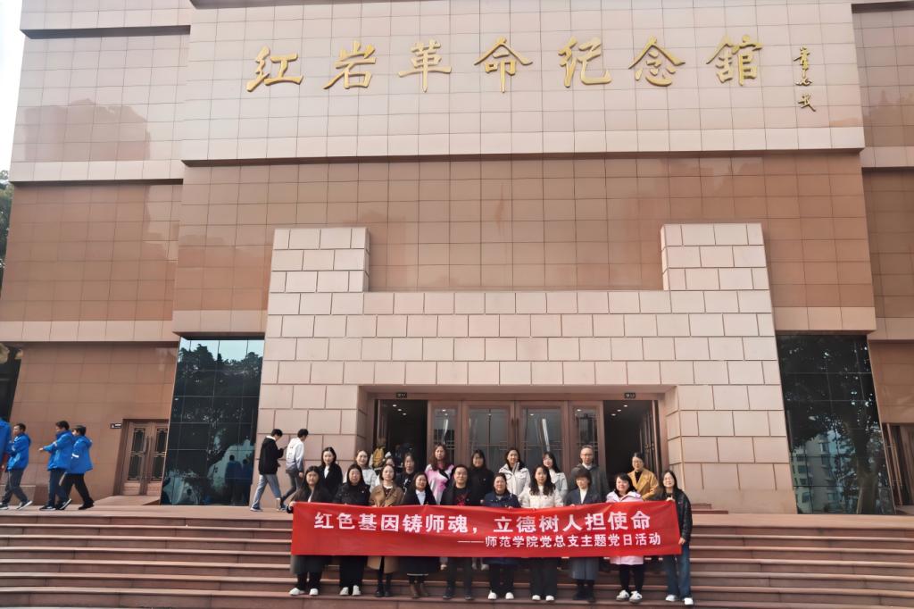 为深入学习贯彻习近平新时代中国特色社会主义思想,弘扬红岩精神,强化师德师风建设,11月28日,师范学院党总支组织全体师生党员和部分优秀入党积极分子赴重庆红色文化教育基地,开展为期两天的主题党日活动。
