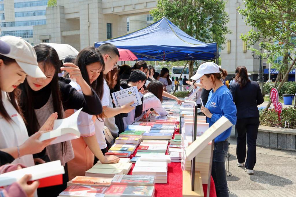 活动当日,医学院党总支和新华文轩广安分公司在医学院李时珍广场设置图书阅览选购台,提供涵盖党史学习、医学教育、中外名著、资格考试等方面书籍1000余册,师生纷纷驻足阅览选购。