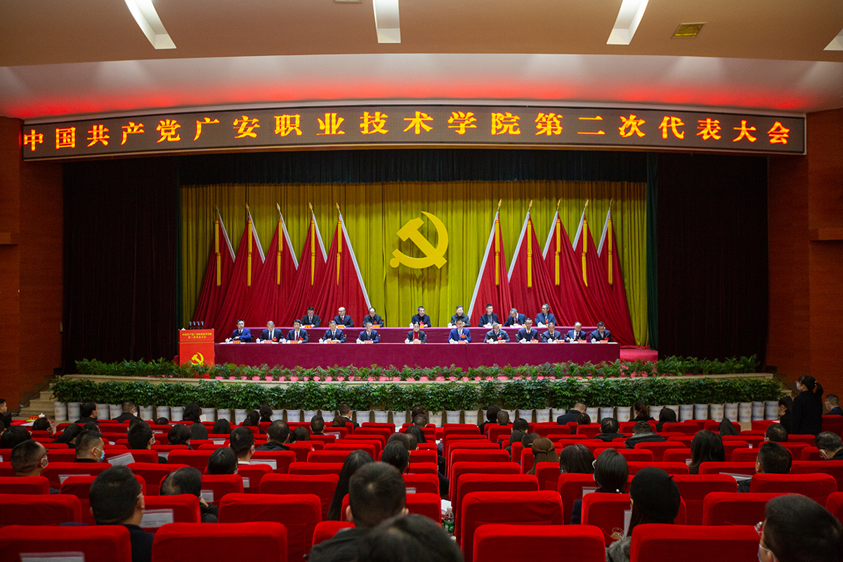 中国共产党ac米兰官网中文网站第二次代表大会是在全国学习贯彻党的二十大精神、全市加快建设川渝合作示范区、全校积极推进“双高计划”建设和本科层次职业学校创建的关键时期,召开的一次十分重要的会议。大会的主题是:高举中国特色社会主义伟大旗帜,全面贯彻习近平新时代中国特色社会主义思想,深入学习党的二十大、省委十二届二次全会和市委六届六次全会精神,全面贯彻党中央、省委、省委教育工委和市委决策部署,准确把握职业教育发展新形势,牢牢抓住学校改革发展新机遇,全面落实立德树人根本任务,解放思想、踔厉奋发,攻坚克难、勇毅担当,迈步新征程、开创新局面,为加快建成本科层次职业学校不懈奋斗,为我市建成川渝合作示范区、打造重庆都市圈北部副中心和社会主义现代化广安贡献力量!