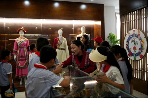 在民族文化交流中心,孩子们通过观看展览、聆听讲解、亲身体验等方式,深入了解中国传统文化的历史渊源、独特魅力和时代价值。他们参观展示传统服饰、手工艺品、民间艺术等元素的展区,感受到了中华文化的丰富多彩。