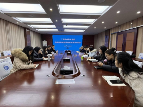 12月26日上午,质量监控与评估处在春晖楼四楼会议室举行省级“双高”绩效管理系统使用培训会。质量监控与评估处全体人员,各项目组、专业群主笔人、“双高”干事和双高绩效管理系统开发人员参加培训。